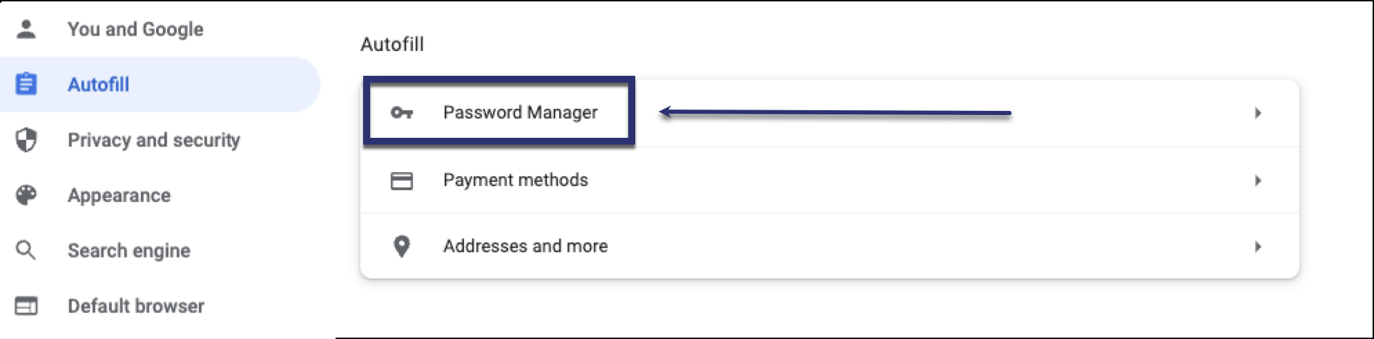 For example, in Google Chrome, to access and remove your saved passwords in the Chrome settings, see the following steps: