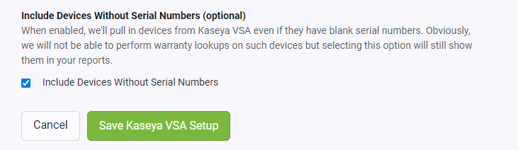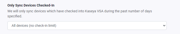 This setting will make Lifecycle Manager only sync in hardware assets that have last checked into Kaseya VSA, within certain time frames.