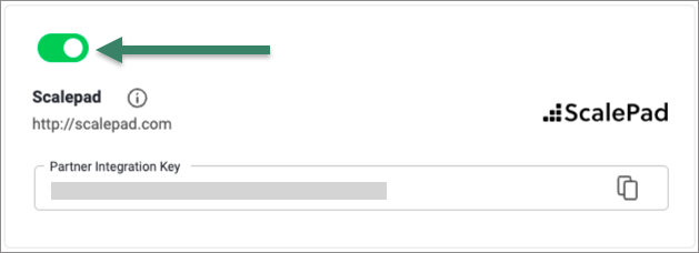 - Enable the integration, revealing the Integration Key.
