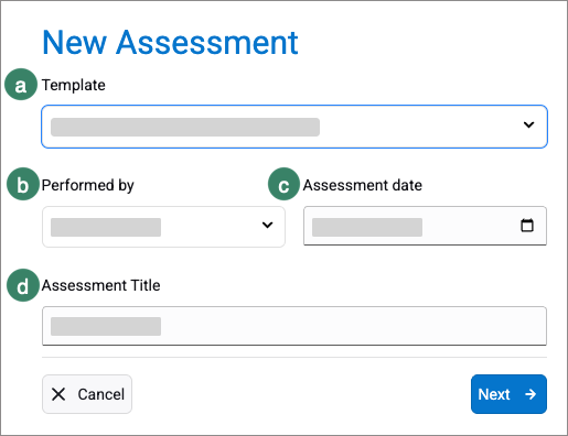 - Click +New assessment in the upper right corner of the Assessment Page.