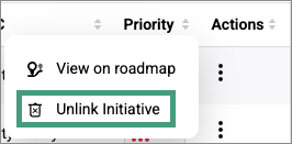 Remove an initiative from a goal by clicking the Actions icon and selecting Unlink Initiative.