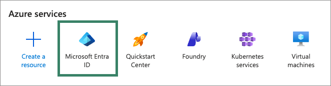- From the Azure portal go to Microsoft Entra ID by clicking its icon under Azure services, or by using the search bar to find it.