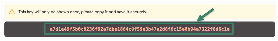 Your API key won't be accessible again once you navigate away from this page. If you lose it, you will need to generate a fresh one.